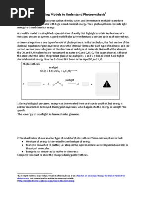 Modeling Photosynthesis And Cell Respiration Answer Key! ____ carbon atoms, ____ hydrogen atoms, and ____ oxygen atoms.